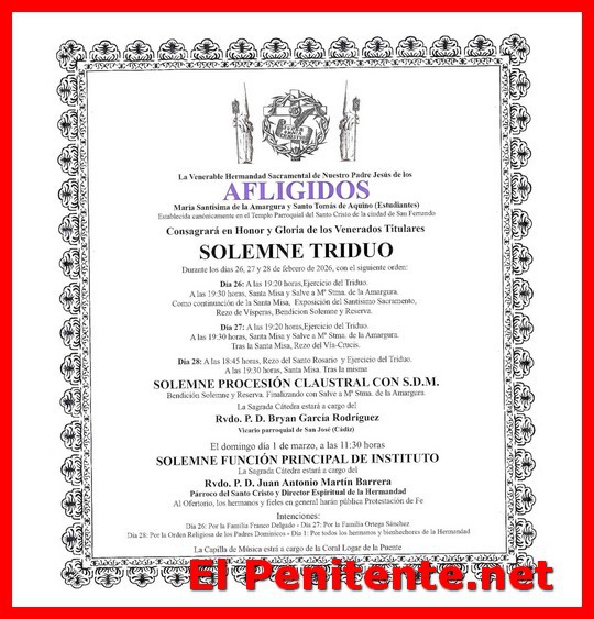 1.- Triduo de la Hermandad de los Afligidos de San Fernando (Cadiz) 01.03.26